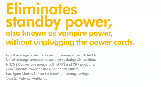 HiSAVER eliminates standby power, also known as vampire power, without unplugging the power cords.